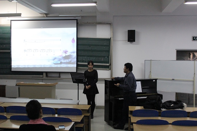 本次示范公开课的主讲教师为音乐学院音乐学系教授、硕士生导师牛力;音乐学院声乐系副教授、硕士生导师纳少军两位老师。牛力老师和纳少军老师分别就钢琴伴奏课程以及声乐演唱课程进行了精彩的讲解示范,与会教师及学生仔细聆听并认真学习。两位教师基本功扎实,课堂效率高,在这次公开课中,无论是教师的演唱、演奏、讲解,还是教师的语言、教态,都显示了作为一个资深音乐教师扎实的音乐素养。课堂内容构思新颖,衔接巧妙、自如,很好的保持了课堂教学的整体性。