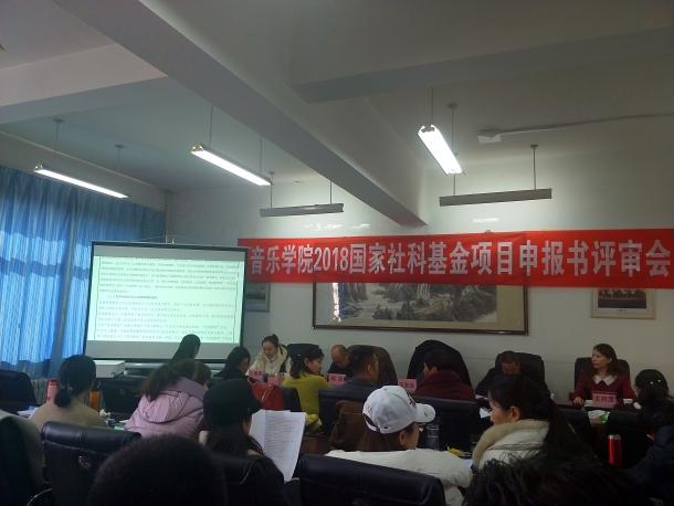 1月12日下午,为做好2018年国家社科基金项目申报工作,实现申报数量和质量“双提升”,音乐学院在四楼会议室举行了2018国家社科基金项目申报书评审会。出席会议的专家有宁夏大学人文学院副院长杨浣教授、宁夏大学教育学院副院长王安全教授和宁夏大学政法学院副院长吕耀军教授。评审会由副院长马冬雅主持,音乐学院全体教师参加了会议。