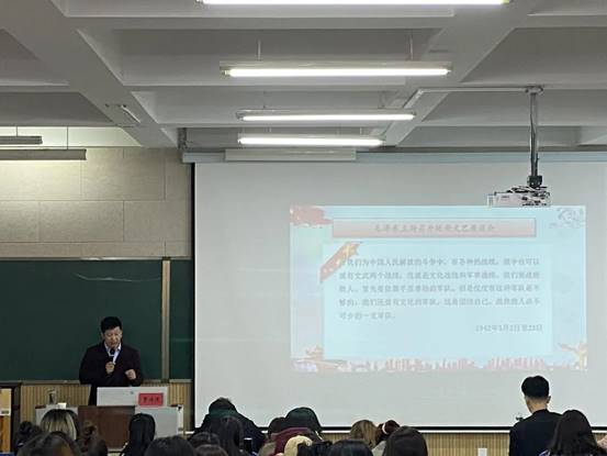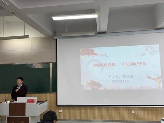 11月11日16时,音乐学院第七期党员发展对象培训班、第十九期入党积极分子培训班暨第十二期“青年马克思主义者培训工程”培训班党课第五讲在德艺楼212教室开讲,本次党课由音乐学院党委副书记贾述道老师担任主讲。