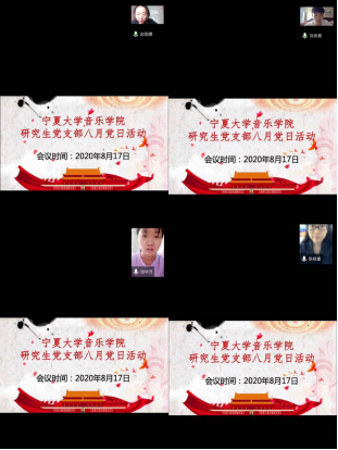 8月17日,音乐学院研究生党支部召开支部会议,开展“学习习近平总书记给中国石油大学克拉玛依校区毕业生回信精神”线上主题党日活动,研究生辅导员胡启立及党支部全体党员参加会议。