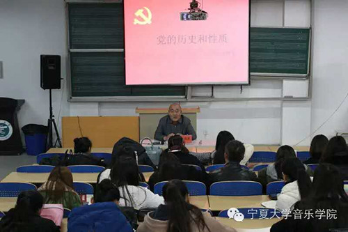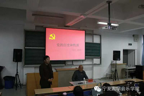 为缅怀先烈,铭记党的历史,激发爱国情怀。11月26日下午,音乐学院在211教室开展了“党的历史和性质”主题讲座。有幸邀请了宁夏大学关工委主任赵维素老师为主讲,学院分党校第十四期入党积极分子、第二期建党对象培训班暨第七期“青年马克思主义者培训工程”培训班学员聆听了讲座,本次讲座由我院党委书记张建国老师主持。