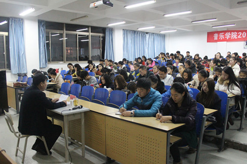 为加强文化素养教育,争做具备专业技能的高层次艺术人才,音乐学院于11月12号晚在学院211教室召开“艺术专业学生党员应该具备的素养与能力”专题讲座,学院党委书记张建国作为本次讲座的主讲人,2015级全体学生、学院第14期入党积极分子及第二届青马班培训学员参与听讲。