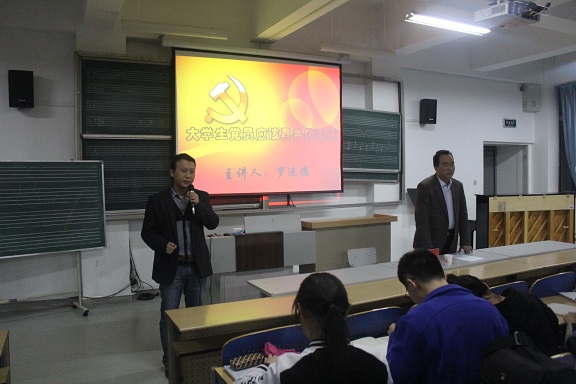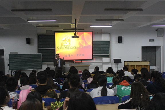 讲座中,罗进德老师分别从“党的历史”、“党的阶级性”、“党的方针与路线”以及“四个全面”等内容进行对党的知识进行了详细介绍和分析。罗老师的讲座,内容丰富有趣,语言幽默诙谐,言辞铿锵有力,使在场的学生深受感染,大家在愉悦的气氛中获取了党史知识。最后,罗进德老师希望学生入党积极分子要“不忘初心,继续前行”,希望大学生党员要有正直的品行高尚的节操,积极发挥大学生党员的先锋模范作用。