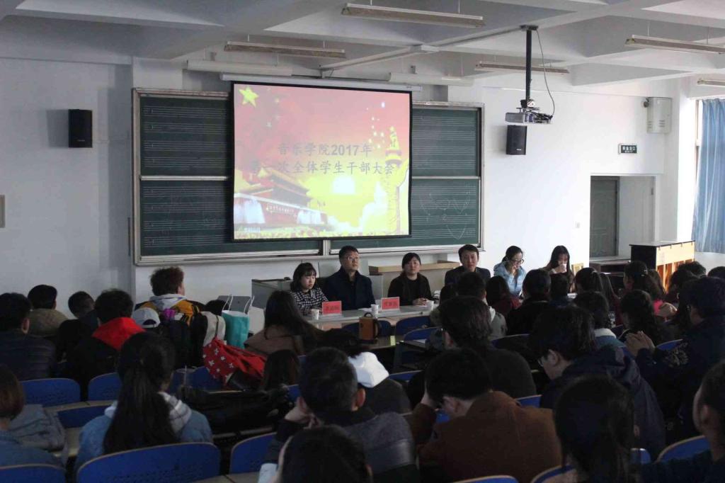 3月9日中午,音乐学院在211教室召开了2017年第一次全体学生干部大会。出席本次大会的有音乐学院学生工作办公室主任张振霞,音乐学院团委书记胡启立,学生辅导员贺紫剑,兼职辅导员马苗苗、仇雨薇、李思旸,音乐学院全体学生干部参加了此次会议。会议由兼职辅导员仇雨薇主持。