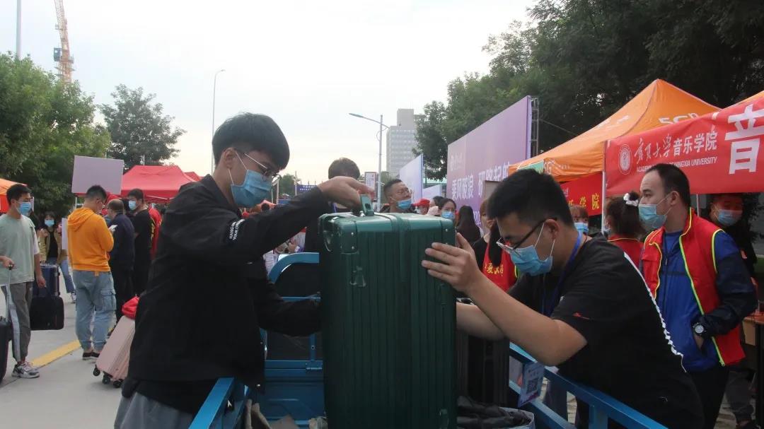 志愿者们头顶烈日带着一拨拨报到的学弟学妹,于“校门口—报到点—宿舍楼”三点一线悉心服务;“学长关怀计划”的大哥哥、大姐姐们工作有条不紊,紧锣密鼓地为萌新们报到注册;“党员先锋号”驮着新生大件的行李,忙碌地反复穿梭在校园之中。我们的愿望只有一个,就是让初来乍到的家庭新成员更快地融入宁大音院这个大家庭。