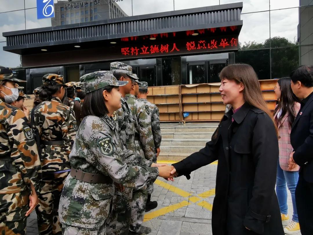 金秋九月,硕果飘香。2020年9月29日上午,音乐学院党委书记张建国、院长雷兴明、党委副书记贾述道、副院长汪学政、副院长马冬雅在德艺楼前广场,专程对一营五连(音乐学院)教官和参训师生进行亲切慰问,学生工作办公室主任王巳卉主持慰问仪式。