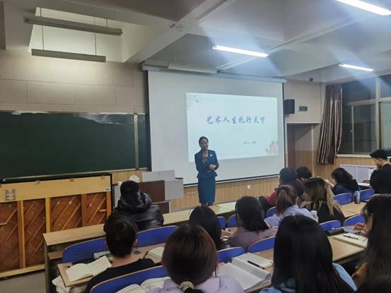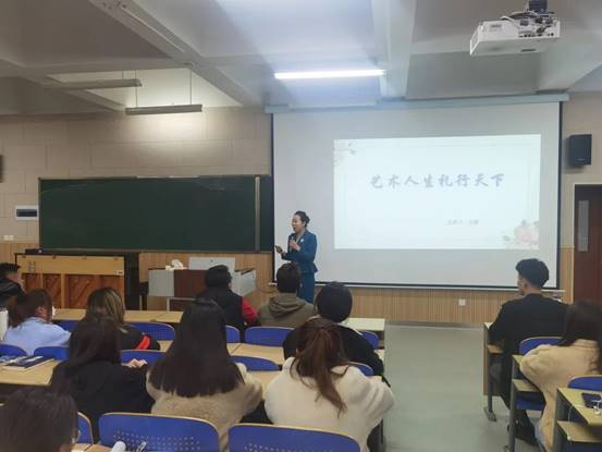 为进一步提升音乐学院学生崇德明礼的专业学习素养,11月12日18时30分,“艺术人生,礼行天下”专题讲座在德艺楼212教室举行,此次讲座邀请到了全国旅游服饰大赛金奖获得者王婧老师担任主讲, 2017级本科生及第十二期青马班学员聆听讲座。