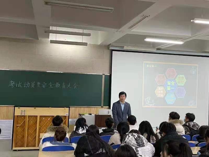 期末考试来临之际,为加强学风建设,营造严肃认真的考风考纪,进一步加强学生的安全防范意识与自我保护能力,我院于2020年12月24日在德艺楼212教室分时段、分批次召开了各年级期末考试动员暨安全教育大会,会议分别由学生工作办公室主任王巳卉、辅导员刘利宁主持召开,音乐学院党委副书记贾述道出席了2020级大会。