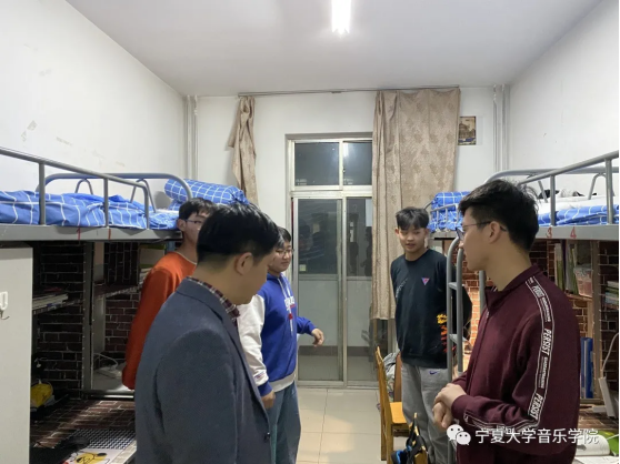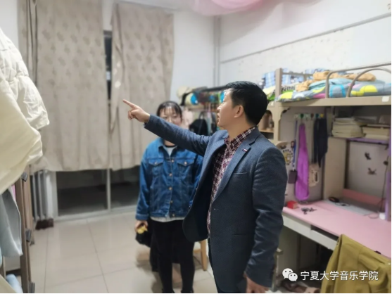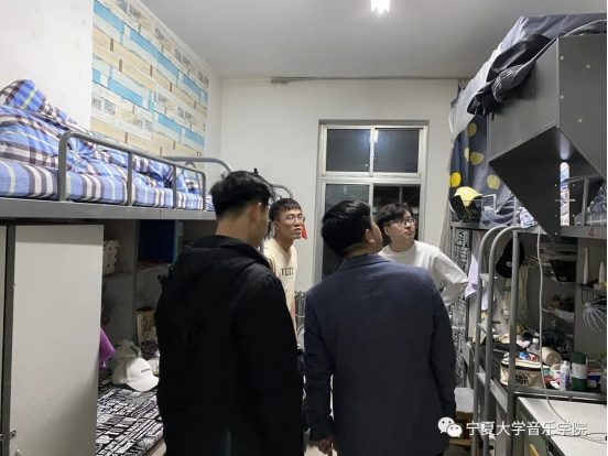 3月10日晚9点,音乐学院党委副书记贾述道带领学生干部对我院学生所在的四栋公寓宿舍进行了全面检查。