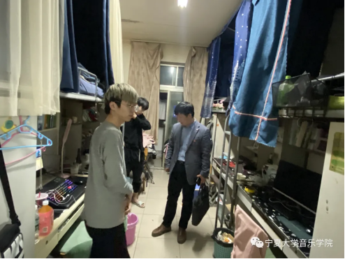 为加强学生宿舍管理,营造整洁有序、和谐健康的宿舍环境,4月8日晚9点,音乐学院党委副书记贾述道带领学生干部对我院学生公寓进行了安全卫生大检查。