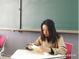其次,由第一党小组代表曹兴同志进行“红色微党课”——讲唱红歌《东方红》。曹兴首先用陕北方言清唱了一小段《东方红》,接着介绍了歌曲的创作背景和发展,他表示,“这一首歌有着穿越时空的魅力,即使在诞生七十多年后的今天,他依然以高亢激昂的旋律激励着我们朝着梦想阔步向前。今年是党的百年华诞,作为音乐学院的学子,我们再唱《东方红》,要将我党先辈为人民服务的伟大精神用我们的方式一代代传承下去”。在曹兴的钢琴声中,在《东方红》的旋律中,今天的“红色微课堂”画上了句号。