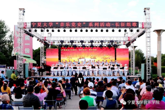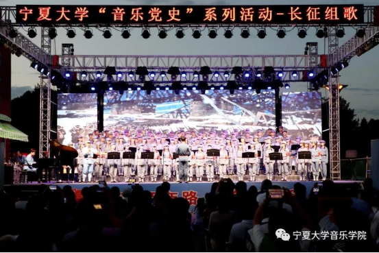 2021年是中国共产党成立100周年,为进一步深化党史学习教育,用音乐传承红色基因、赓续精神血脉,凝聚起全校师生奋进新征程的磅礴力量,走好新时代的长征路,6月17日晚,由自治区党委宣传部、自治区文明办、自治区文化和旅游厅、自治区财政厅、自治区国防办主办,宁夏大学承办,新葡萄88833官网amg协办的庆祝建党100周年“音乐党史”系列活动“清凉宁夏”《长征组歌》专场文艺演出在银川市光明广场隆重上演。校党委副书记王玉炯和我校党委组织部、党委宣传部、音乐学院等相关负责人与市民一同聆听了这场极具感染力的壮丽史诗。