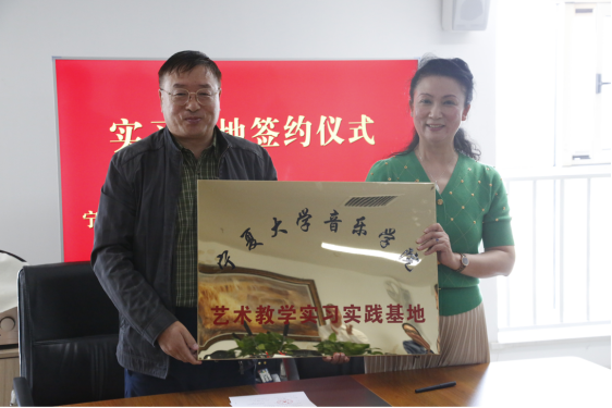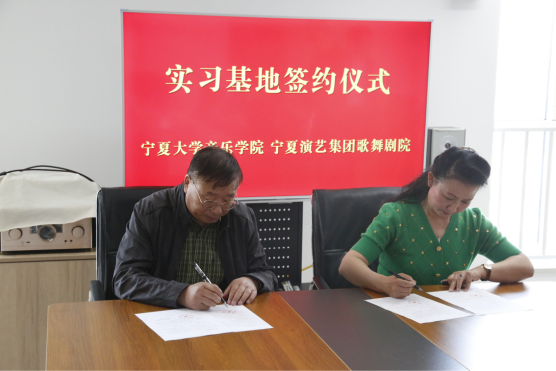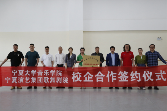 为深入贯彻落实《宁夏大学书记校长访企拓岗促就业专项行动实施方案》,进一步切实做好2022届毕业生就业工作,5月20日上午,在学院院长雷兴明的带领下,学院党委副书记贾述道、舞蹈系主任金晖、学生工作办公室主任王巳卉、学院办公室姚永昊一行来到宁夏演艺集团歌舞剧院,举行校企合作签约授牌仪式暨艺术教育人才培养座谈会。宁夏演艺集团副总经理、歌舞剧院党支部书记、院长陈丽云,歌舞剧院副院长惠勇,歌舞剧院党支部副书记石宏谋等人参加了本次签约仪式暨座谈会。