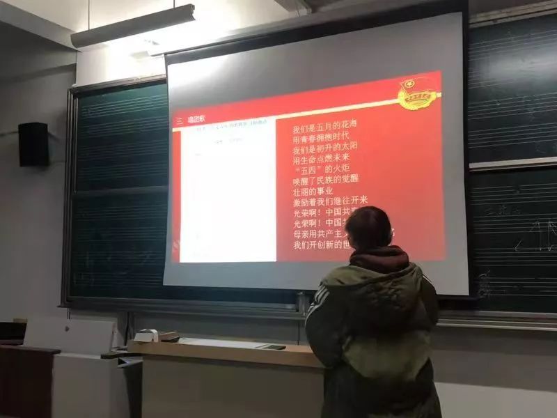 《光荣啊,中国共青团》,慷慨激昂的歌词、动人心弦的旋律,在18级3班车欣悦同学的领唱下,在场团员深刻体会到作为中国共青团员的自豪感以及身上肩负的伟大使命,活动在豪迈团歌大合唱中圆满结束。