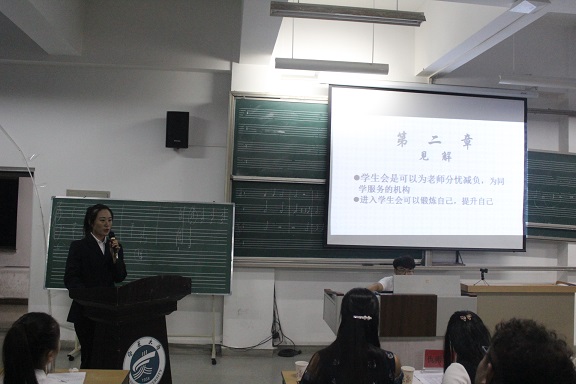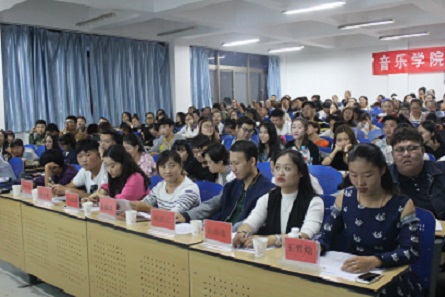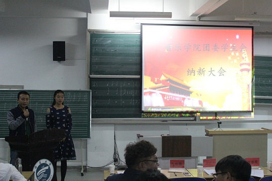 9月22日晚,音乐学院第六届团委学生会纳新大会在学院211教室举行。学生工作办公室主任张振霞,学院团委书记胡启立,兼职辅导员马思琪,学生会主席团、各部长以及竞选学生会的2016级新生参加了这次大会。