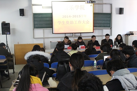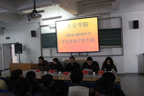 2015年12月16日中午,我院在211室举行了2015年学生资助工作大会。参加此次大会的有音乐学院党委书记张建国,音乐学院学生办公室主任张振霞,音乐学院团委书记、学生工作办公室辅导员胡启立,音乐学院学生工作办公室辅导员鱼彬及音乐学院兼职辅导员马思琪。会议由张振霞老师主持。