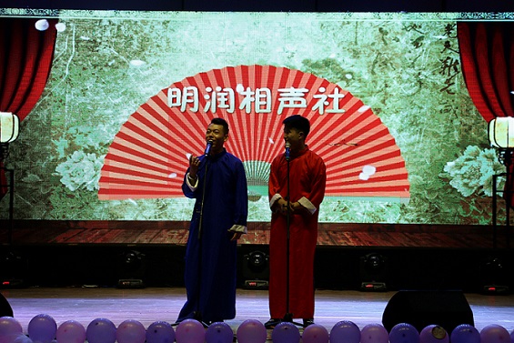 接下来,音乐学院“2017•爱在一起”欢送2017届毕业生文艺晚会正式开始。歌曲《天空》、音乐情景剧《对面的女孩看过来》、舞蹈《梦飞翔》带我们一起回忆大学四年里怀揣梦想与激情奋力拼搏的浪漫时光;纯音乐《Nightingale》、小品《善恶终有报》、相声《欢声笑语》等节目精彩连连,台下掌声如潮;原创歌曲《夜未央》、歌曲《海阔天空》、《理想》赢得了观众的阵阵掌声;由音乐学院舞蹈教师韩磊带领2015级舞蹈班为大家带来的舞蹈剧《人间精品起来嗨》更是嗨翻全场,将晚会推向高潮;最后晚会在音乐学院教师李黎指导的女生合唱《想你的365天》的精彩演唱下落下帷幕。