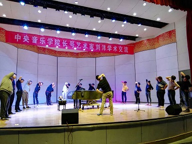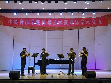 上午9:00,刘洋老师学术交流大师班集体课在音乐厅举行,首先,刘洋老师为音乐学院师生就长号演奏的技巧、技法等内容作了详细全面的理论讲解与示范,现场就学习参与者在长号演奏方法的基本功方面进行着重指导。随后,在大师班小课上,刘洋老师针对学生个人在演奏曲目的风格处理、情感把握上进行指导和教学。在本次交流活动中,音乐学院师生们积极配合,现场气氛轻松活跃,不仅使音乐学院的师生现场领略了刘洋老师的高超技艺和风采,而且还使师生们进一步深入了解了长号演奏的技巧技法,对今后的学习有很大的帮助。