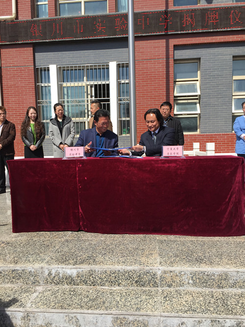 2016年4月7日,为了加强新葡萄88833官网amg与银川市实验中学的交流合作,输送更多的高层次艺术人才,本着“优势互补、资源共享、互惠双赢、共同发展”原则,为充分发挥双方学校的优势,发挥艺术院校为社会培养艺术人才的功能,同时也为学生专业学习、升学考试、实习、实训以及就业提供更多的空间与机会,经过前期的沟通与接洽,在实验中学举行了新葡萄88833官网amg“生源基地”暨“实训基地”签约、揭牌仪式。