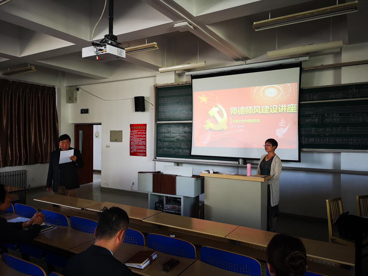 2019年4月17日下午,音乐学院邀请宁夏大学外国语学院教授郭鸿雁教授进行了师德师风建设讲座。讲座由张建国书记主持,刘明院长带领全院教师参加了讲座。在全校进一步深入开展“清风校园”创建活动,坚持把纪律和规矩挺在前面,推动落实全面从严治党要求,对于促进各级党组织、领导班子和领导干部进一步增强责任意识,自觉履行“一岗双责”,促进党员干部和广大教职员工增强纪律规矩意识、法制观念,做到恪守职业道德、爱岗敬业、依法执教、以良好的师德师风营造良好校园文化,促进青年学生努力践行社会主义核心价值观,弘扬崇廉尚洁、诚实守信,树立正确世界观、人生观、价值观,对推动我院音乐教育事业持续健康发展,都具有十分重要的作用。