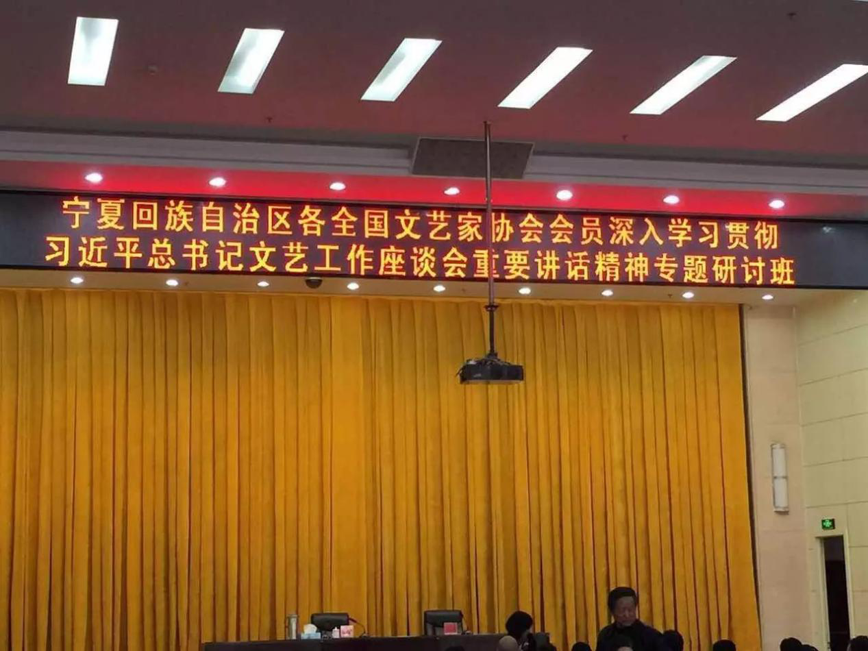 宁夏回族自治区党委常委、宣传部长赵永清,自治区文联党组书记、主席郑歌平出席了开班仪式!中国文联副主席、书记处书记郭运德为培训班做了“深入学习讲话精神,切实推动文艺繁荣”的第一堂专题讲座。培训班采取专题讲座和分组研讨相结合的方式,邀请了中国音乐文学学会副主席王晓玲、中国书协秘书长郑晓华等知名专家为学员讲授“中国梦歌曲创作漫谈”、“习近平总书记在文艺工作座谈会上的重要讲话”等专题。