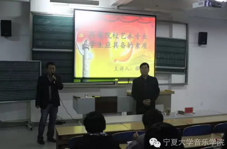为加强文化素养教育,争做具备专业技能的高层次艺术人才,音乐学院于10月26日晚在学院211教室召开“高等院校艺术专业学生应具备的素质”专题讲座。