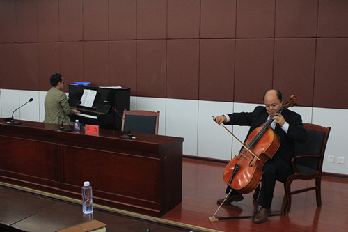 讲座中,刘明院长首先对苏力教授进行简单介绍,并对苏力教授的此次来访表示热烈欢迎。随后,苏力教授从目前我国大提琴的学习现状开始,结合自己的学习经历对国内音乐教育状况进行简单介绍,希望音乐专业学生有更高的追求和梦想。接着,苏教授详细为同学们讲解了大提琴和蒙古音乐的关系,他从大提琴最早的演奏方式说起,联系其与马头琴的相同点,将两个乐器的音色、表现方式进行了现场的解说和演示。说到蒙古音乐,苏教授认为“蒙古音乐”具有诸多特点,而这一特点随地域变化而略有不同。在讲述二者关系的同时,苏力教授谈起自己的求学、讲学的诸多感悟,并勉励宁夏大学音乐专业学生走出校门,走向更高的学府去深造。最后,讲座在一曲优雅的《摇篮曲》中走向尾声。讲座结束后,苏力教授还向宁夏大学赠送了个人作品光盘和书籍,冯秀芳院长代表学校接收了赠送礼物,双方就今后的交流和学习达成了友好的协议。