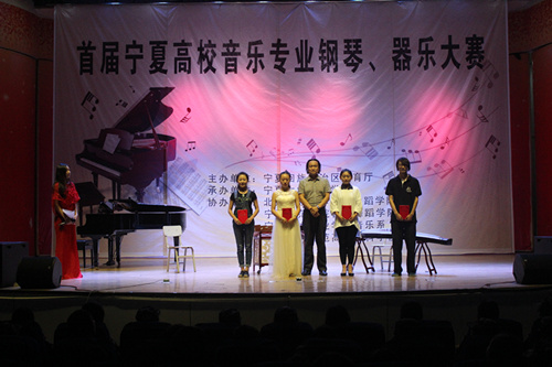 琴声飞扬,令人沉醉。2015年9月16日下午,伴随着2015年首届宁夏高校音乐专业钢琴、器乐大赛颁奖典礼暨优秀选手汇报音乐会的圆满落幕,此次大赛也划上了一个圆满的句号。大赛的参赛选手主要是来自宁夏大学、北方民族大学、宁夏艺术职业学院以及宁夏师范大学音乐专业的学生,共约300余人。作为宁夏地区首届高校音乐专业钢琴、器乐大赛,这是自治区教育厅审批立项的大学生创新实践能力的一次体现,也是对各院校人才培养质量的一次检验和阅兵。同时,大赛也搭建了一个很好的平台,既让学生们展现了自身的演奏实力以及舞台表现力,又促进了各学校之间在音乐演奏技能和教学上的交流。