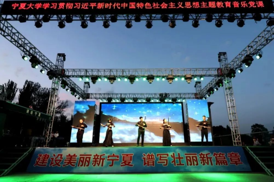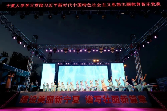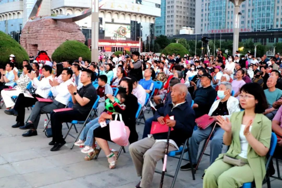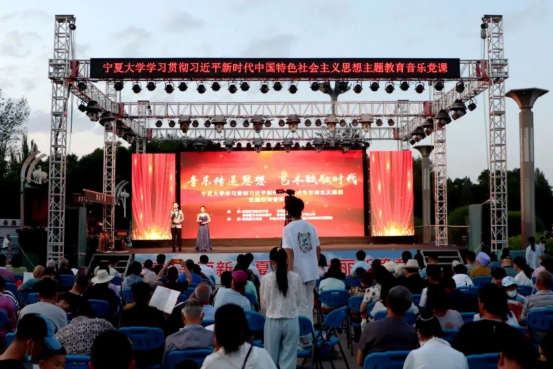为深入开展党的二十大精神和习近平总书记视察宁夏重要讲话指示批示精神“大学习、大讨论、大宣传、大实践”活动,推动党的二十大精神走进基层、走进群众,巩固壮大主流思想舆论,6月9日,由自治区党委宣传部、自治区文明办、自治区文化和旅游厅、自治区财政厅联合举办,宁夏大学承办的“音乐传递思想,艺术致敬时代”学习贯彻习近平新时代中国特色社会主义思想主题教育音乐党课在光明广场精彩上演。校党委副书记周震,党委常委、宣传部部长高永兴,音乐学院、新闻传播学院班子成员、组织部相关负责人等与市民一同在现场观看演出。