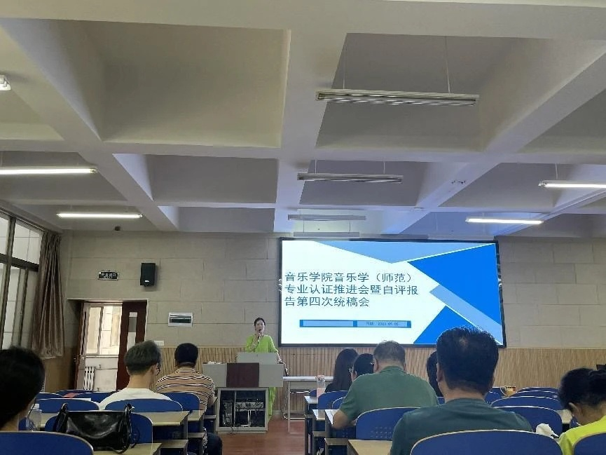 2023年9月6日下午,为全面推进做好音乐学(师范)专业认证工作,新葡萄88833官网amg于德艺楼2楼212室召开师范专业认证推进会暨自评报告第四次统稿会。本次会议由音乐学院副院长潘珅主持,全体教职工参加。