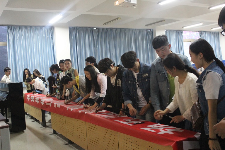 【宁夏大学新闻中心讯音乐学院马婷婷/文马婷婷/图】为迎接五四青年节的到来,纪念五四运动97周年,讴歌五四精神,引导我院广大学生继承优良传统,进一步坚定跟党走中国特色社会主义道路的信念,5月4日晚上,音乐学院团委学生会全体成员及15级全体学生在211室举行五四宣誓签名活动,积极引导和教育广大团员青年继承和弘扬五四精神。此次活动由音乐学院团委学生会宣传部部长马沛龙主持。