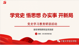 2021年3月25日,音乐学院研究生党支部于德艺楼402会议室召开党史学习教育研读活动,全体支部成员参加,党支部书记王巳卉主持会议。