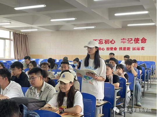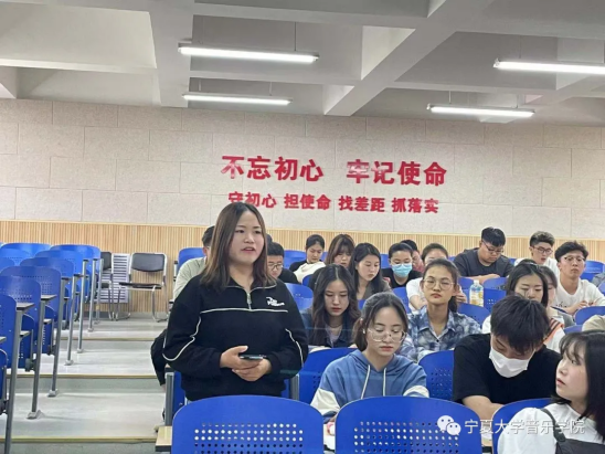 5月21日中午,音乐学院在德艺楼212教室召开团委学生会全体学生干部大会,学院党委副书记贾述道、学生工作办公室主任王巳卉出席会议。