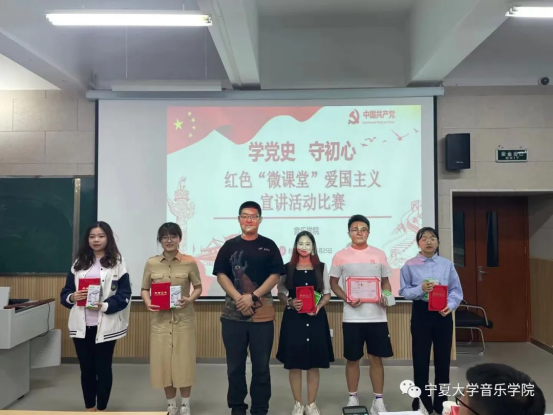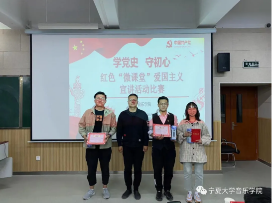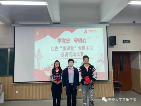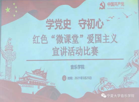 为庆祝中国共产党成立100周年,加深学生对党、对祖国、对中国特色社会主义事业的热爱之情,引导学生通过分享英雄故事、重读红色家书、讲唱经典红歌树立念党恩、听党话、跟党走的坚定理想信念,5月25日晚7点,音乐学院在德艺楼212教室开展了“学党史 守初心”红色“微课堂”大赛。学院党委副书记贾述道、学生工作办公室主任王巳卉、辅导员刘利宁、校党委宣传部冯禹君,学院办公室姚永昊担任大赛评委,比赛吸引力了学院2018级、2019级、2020级20名选手参赛。