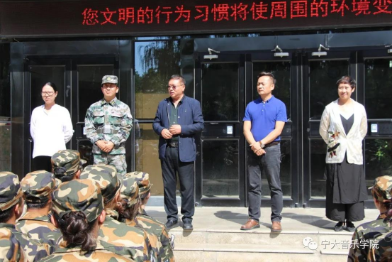 艰苦不足惧,关切暖人心。9月28日中午,在军训即将迎来汇报表演的关键尾声阶段,音乐学院院长雷兴明、党委副书记贾述道、副院长汪学政、陈宏在德艺楼前看望慰问我院2021年军训参训师生。