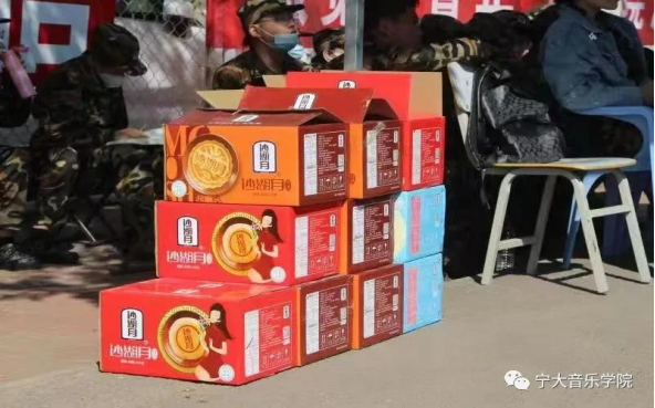 金秋九月,硕果飘香。2021年9月21日上午,音乐学院领导专程对一营五连(音乐学院)教官和参训师生进行亲切慰问,2021级新生整齐列队,以全新的精神面貌迎接学院领导的检阅和慰问。学院领导亲手将一箱箱爱心月饼传递到参训教官和师生手中,对教官和老师的辛勤付出致以诚挚感谢,对新生的刻苦训练给予高度肯定。