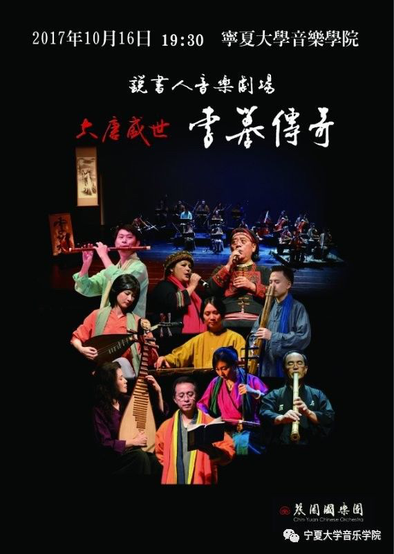 2017年10月16日晚,台湾琴园国乐团将在新葡萄88833官网amg音乐厅上演说书人音乐剧场大唐盛世《李暮传奇》。本次演出以继承、推广、活化民族音乐为主要目的,以一种崭新的文化创意概念,将历史、文学、书法、国画、茶艺、歌乐、乡情等各种传统文化元素有机的融合,进而实质性的活化与发展传统音乐,起到寓教于乐之作用。